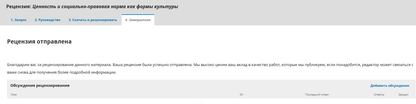 Переход на данный этап означает, что рецензия успешно отправлена.