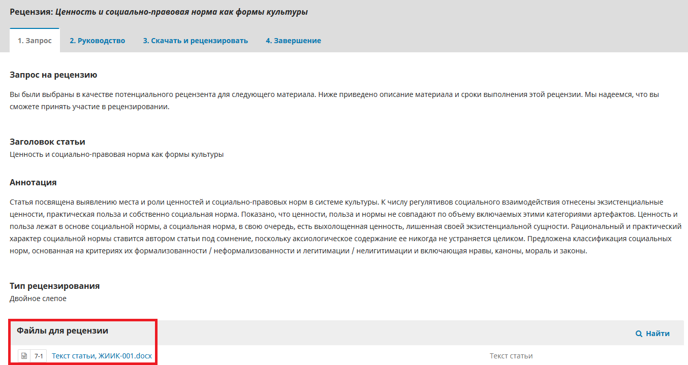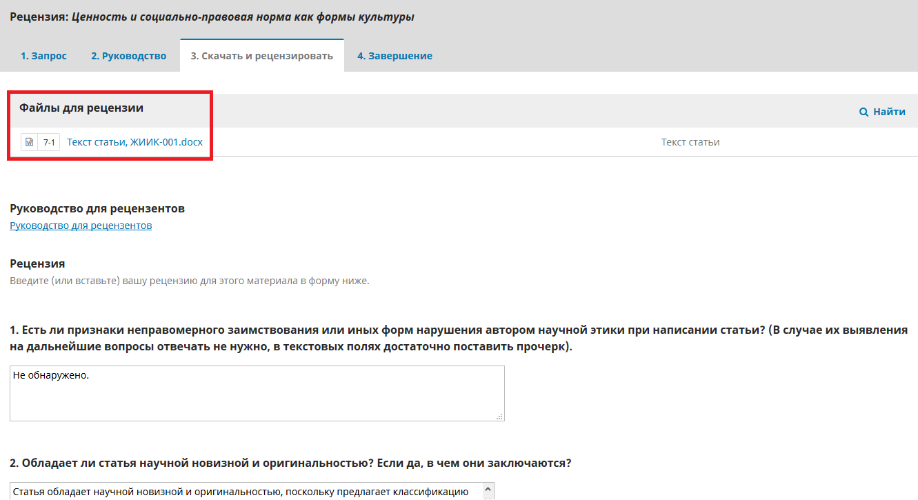 Если вы дали согласие написать отзыв, вы переходите к ознакомлению с руководством для рецензентов. Пожалуйста, внимательно прочитайте его, а затем нажмите «Перейти к шагу № 3».
